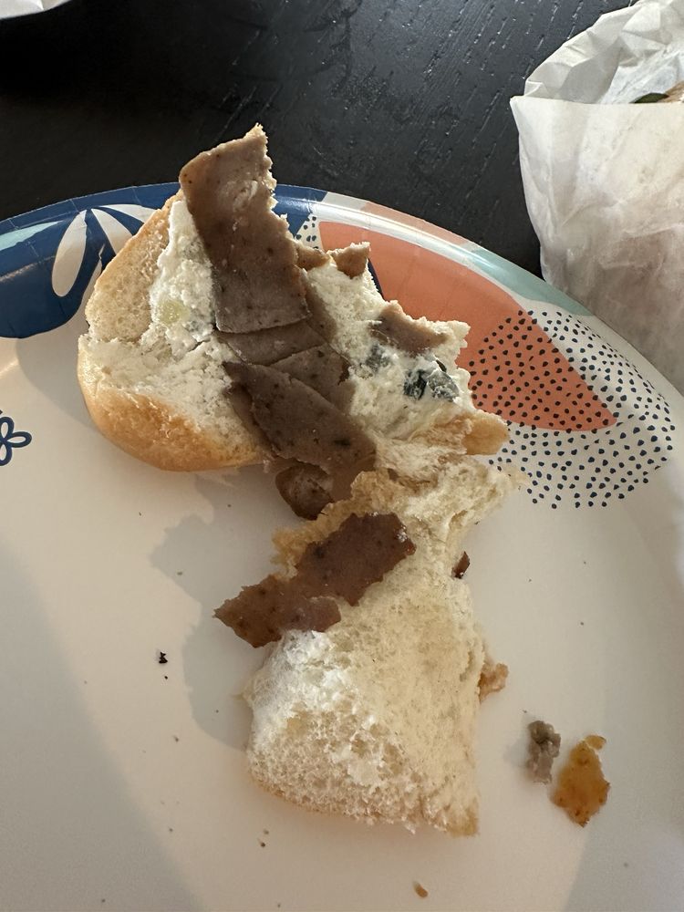 Hot Dog, Crumbled Bacon, Tomato, Onion, Mustard, Mayo